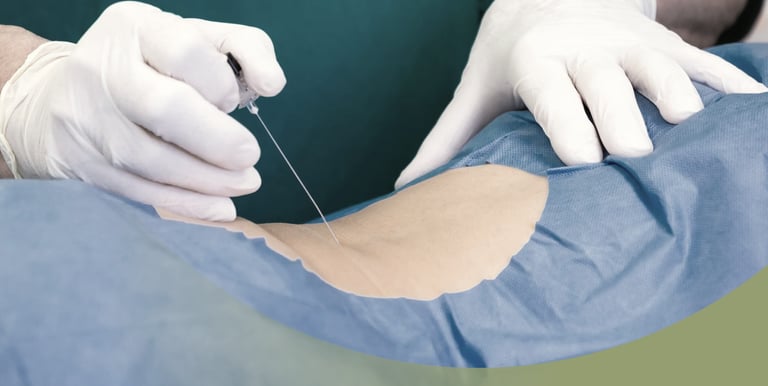 O bloqueio é uma técnica em que medicamentos (como anestésicos e anti-inflamatórios) são aplicados próximos aos nervos ou articulações para aliviar dor e inflamação. É uma abordagem tradicional, frequentemente usada como complemento a outros tratamentos regenerativos.